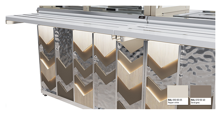 Мармит первых блюд 3-конфорочный Luxstahl МПЧ (С)-1500 Premium Vector (Вектор) с направляющей из нержавеющей стали используется в составе линии раздачи Vector на предприятиях общественного питания и торговли для кратковременного хранения в горячем состоянии первых блюд в наплитных котлах и раздачи их потребителю. Модель оснащена 3 чугунными конфорками и верхней полкой из стекла 6 мм. Каркас выполнен из нержавеющей стали AISI 430 толщиной 1 мм, фасад - из окрашенного МДФ, направляющая для подносов - из профильной трубы 25х25 мм. Особенности: