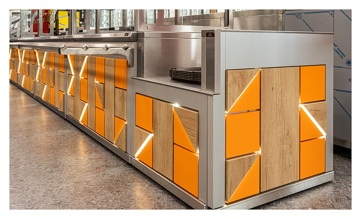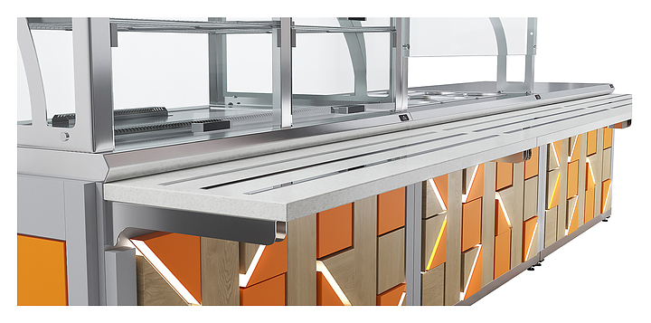 Прилавок для приборов Luxstahl ПП (С)-600 Premium Junior (Джуниор) без направляющей из нержавеющей стали используется в составе линии раздачи Junior на предприятиях торговли и общественного питания для хранения и раздачи столовых подносов. Модель оснащена увеличенной ёмкостью для размещения столовых подносов. Каркас выполнен из нержавеющей стали AISI 430 толщиной 1 мм, фасад - из окрашенного МДФ. Особенности: