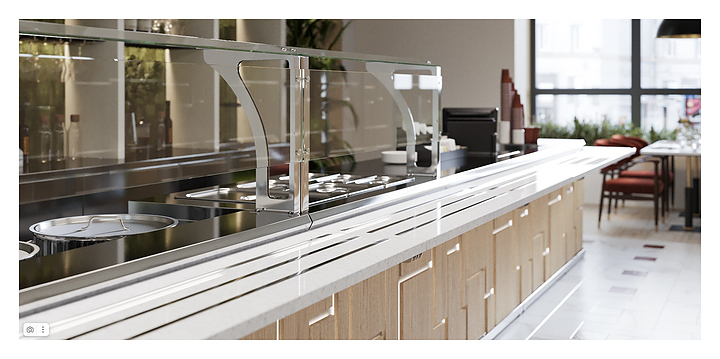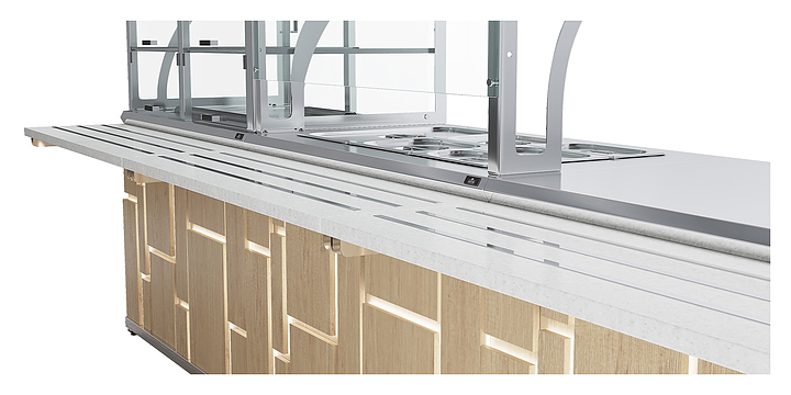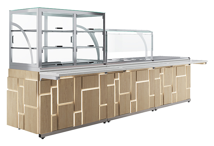 Прилавок холодильный Luxstahl ПХК (С)-1200 Premium Megapolis (Мегаполис) используется в составе линии раздачи Megapolis на предприятиях общественного питания и торговли для выкладки продуктов и напитков. Модель оснащена верхней полкой из стекла 6 мм и подсветкой (две светодиодные лампы). Каркас выполнен из нержавеющей стали AISI 430 толщиной 1 мм, фасад - из окрашенного МДФ, направляющая для подносов - из профильной трубы 25х25 мм. Особенности:
