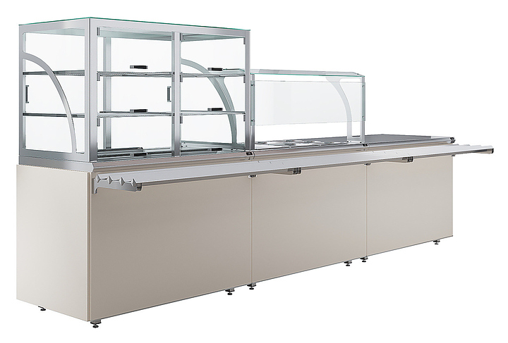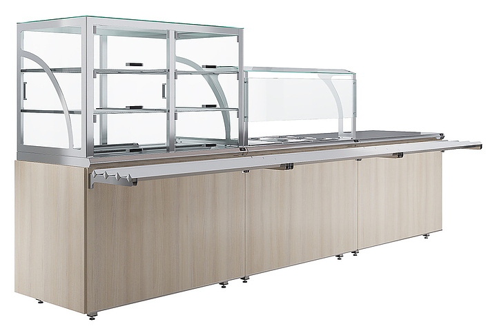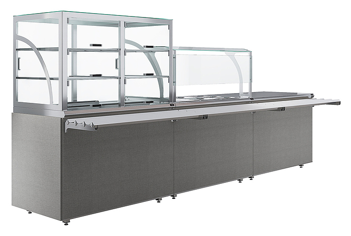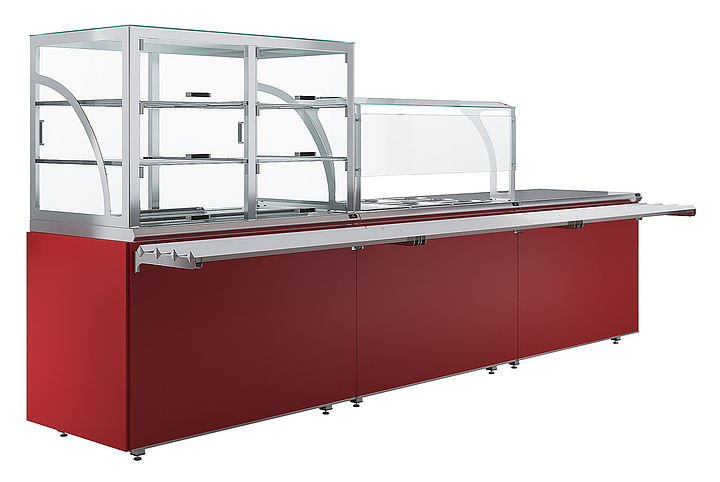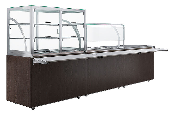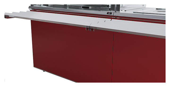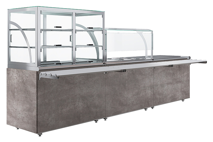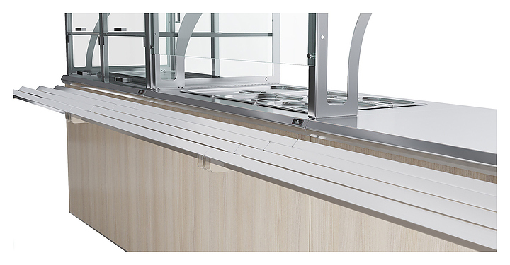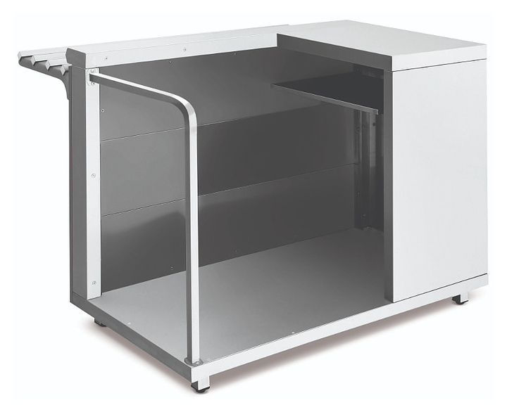 Прилавок кассовый универсальный Luxstahl КК-1200 Premium Classic (Классик) с направляющей для подносов из нержавеющей стали используется в составе линии раздачи Classic на предприятиях общественного питания и торговли для оборудования рабочего места продавца-кассира. Модель оснащена дополнительной полкой и отверстием для кабеля. Каркас выполнен из нержавеющей стали AISI 430 толщиной 1 мм, фасад - из окрашенного МДФ, направляющая для подносов - из профильной трубы 25х25 мм. Особенности: