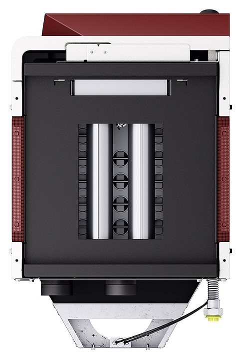 - Распашная фронтальная дверь с магнитным фиксатором, легкосъемные боковая панель и верхняя крышка с клипсовым креплением, съемные крышки дымосборника для удобства технического обслуживания и очистки без необходимости отсоединения дымохода
