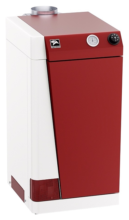 Газовый отопительный котел Лемакс UNO-20 предназначен для эксплуатации в системах отопления с принудительной или естественной циркуляцией теплоносителя в жилых и загородных частных домах, а также других бытовых и хозяйственных объектах. Модель оснащена газогорелочным устройством ГГУ-24NP с инжекционными микрофакельными горелками Polidoro (Италия) и автоматикой безопасности SIT 820 Nova (Италия), сварным теплообменником с цилиндрическими дымогарными каналами, расположенной на верхней фронтальной наклонной стенке механической панелью управления с поворотно-нажимным переключателем, расположенными на тыльной стенке патрубком дымохода, резьбовым штуцером для подключения газа, патрубками подачи и обратки отопительного контура. Вертикально ориентированный корпус выполнен из стали с антикоррозийным покрытием в комбинации красного и белого тонов, теплообменник – из высококачественной стали с покрытием антикоррозийной термостойкой эмалью и обработкой ингибирующим соли составом, горелки – из жаропрочной нержавеющей стали, оплетка газового шланга – из нержавеющей стали.