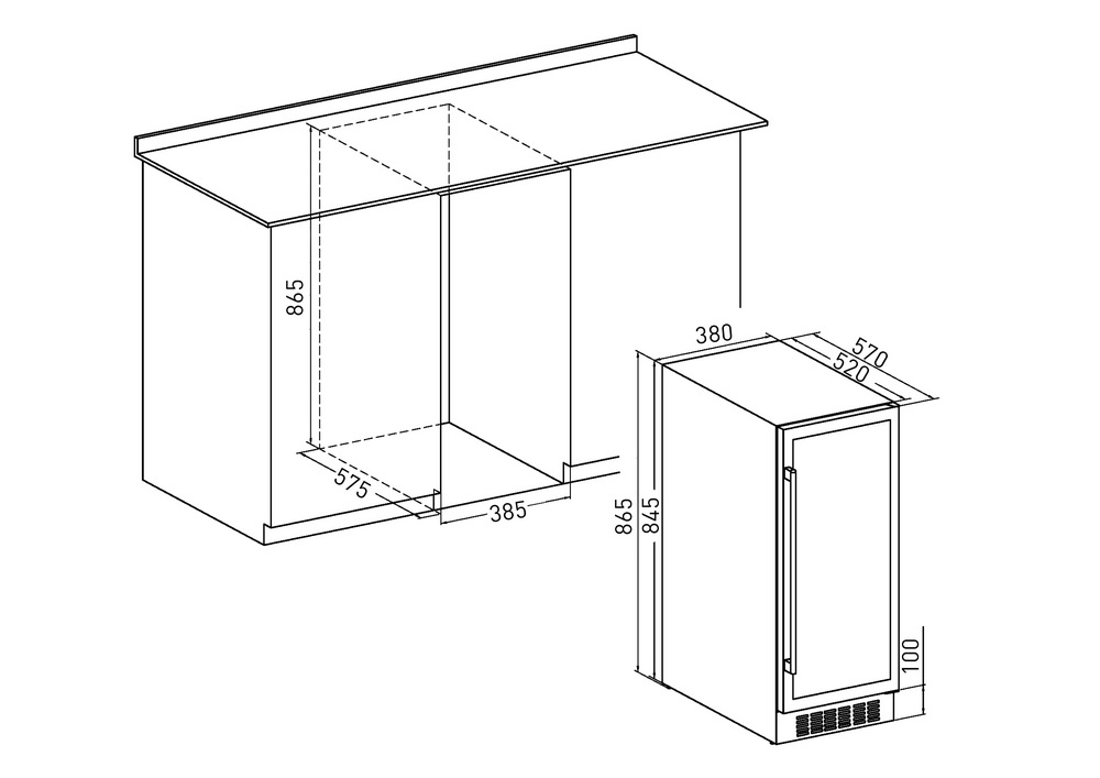 - Минимальные габариты ниши для встраивания: 385х575х865 мм