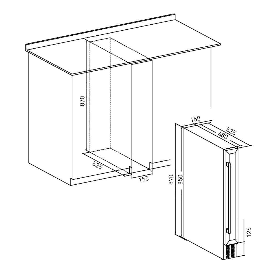 - Минимальные габариты ниши для встраивания: 155х525х870 мм