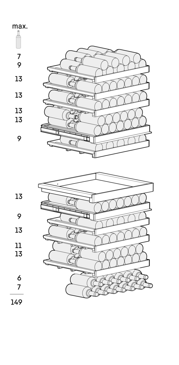 - Разделительные деревянные планки FlexFit для гибкого хранения бутылок большего диаметра