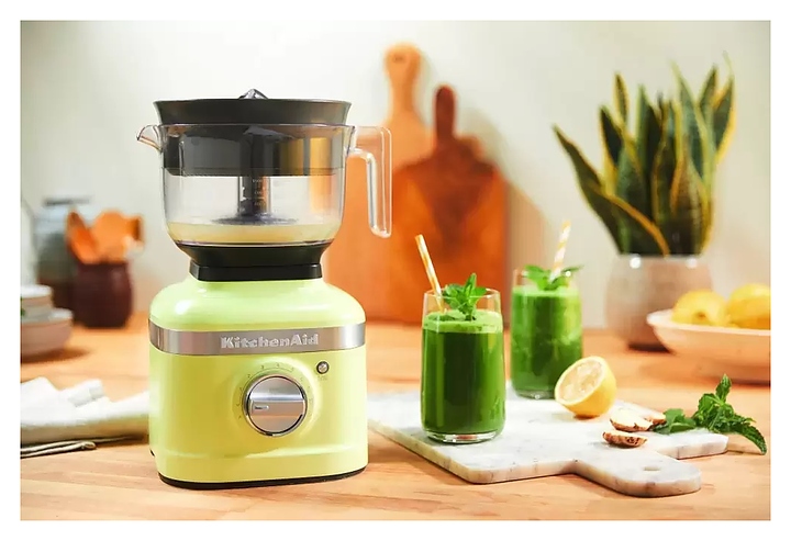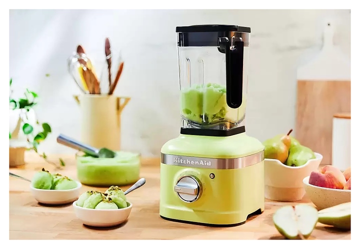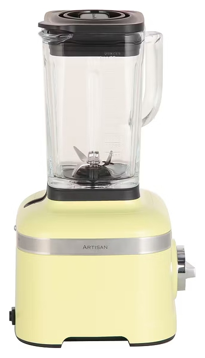 Стационарный блендер KitchenAid Artisan K400 5KSB4026EKG предназначен для измельчения пищевых продуктов и приготовления муссов, смузи, фраппе, соусов, коктейлей, фруктовых и овощных пюре в домашних условиях. Модель оснащена кабелем питания с вилкой и электромеханической панелью управления. Корпус квадратно ориентированной формы выполнен из металла методом литья под давлением с покрытием оттенка сияющий Киото (Kioto Glow) и декоративной серебристой полосой с логотипом по периметру верхней части, основание прибора и корпус ножевого узла – из черного пластика, кувшин – из стекла, крышки – из черного полимера, ножи – из высококачественной нержавеющей стали, переключатель с серебристой поверхностью.