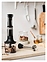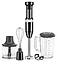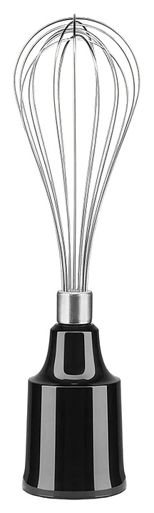 Погружной блендер KitchenAid 5KHBV83EOB предназначен для взбивания жидкого теста, кремов и коктейлей, измельчения фруктов, овощей, орехов и трав, а также приготовления соусов и супов-пюре в домашних условиях. Модель оснащена кабелем питания с вилкой и интегрированной в корпус рукояткой обтекаемой формы с удобно расположенной нажимной клавишей управления. Корпус выполнен из пластика с поверхностью черного цвета (Onyx Black) и декорирован серебристой полосой с логотипом по периметру центра, адаптеры основной насадки и венчика – из пластика с поверхностью в тон корпуса, насадки и ножи – из высококачественной нержавеющей стали, чаша, стакан и загрузочная горловина крышки стакана – из ударопрочного пластика без содержания бисфенола A (BPA), адаптеры чаши и ножа, крышка стакана и защитная насадка – из полимеров с матовой черной поверхностью. Комплектация: