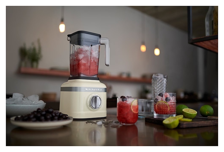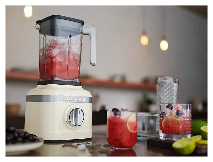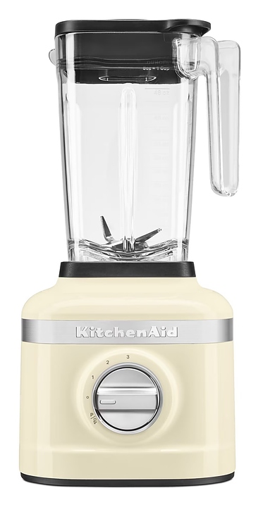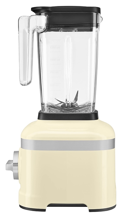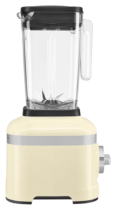 Стационарный блендер KitchenAid К150 5KSB1325EAC предназначен для измельчения пищевых продуктов и приготовления муссов, смузи, фраппе, соусов, коктейлей, фруктовых и овощных пюре в домашних условиях. Модель оснащена кабелем питания с вилкой и электромеханической панелью управления. Корпус квадратно ориентированной формы выполнен из пластика с поверхностью оттенка миндальный крем (Almond Cream) и декорирован серебристой полосой с логотипом по периметру верхней части, основание прибора и корпус ножевого узла – из черного пластика, кувшин – из пластика без содержания бисфенола A (BPA), крышки – из черного полимера, ножи – из высококачественной нержавеющей стали, переключатель с серебристой поверхностью.