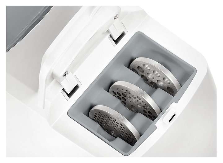 Мясорубка Bosch MFW66020 серии ProPower измельчает мясо и рыбу при производстве фарша, формирует колбаски и кеббе. Модель оснащена 5 насадками, мощным двигателем, ручкой для переноски и прорезиненными ножками, которые обеспечивают комфорт и безопасность при работе. Корпус и лоток выполнены из пластика. Комплектация: