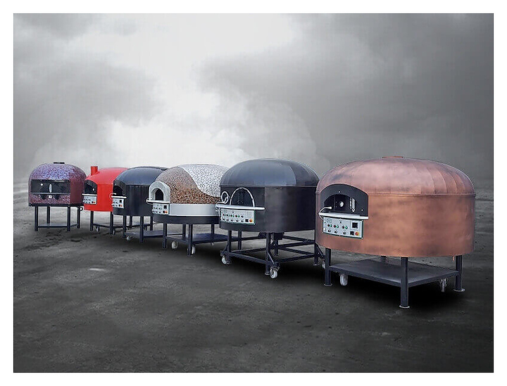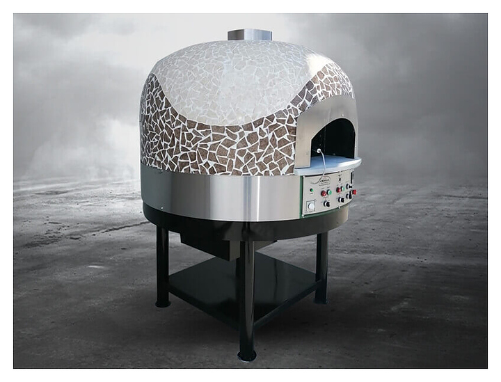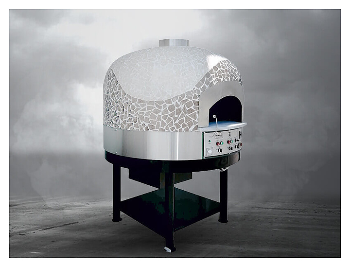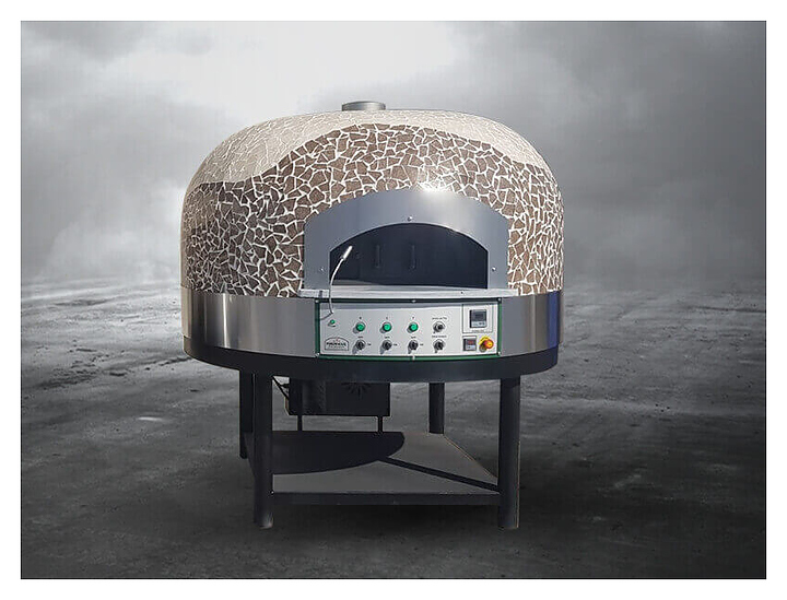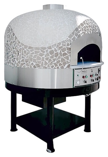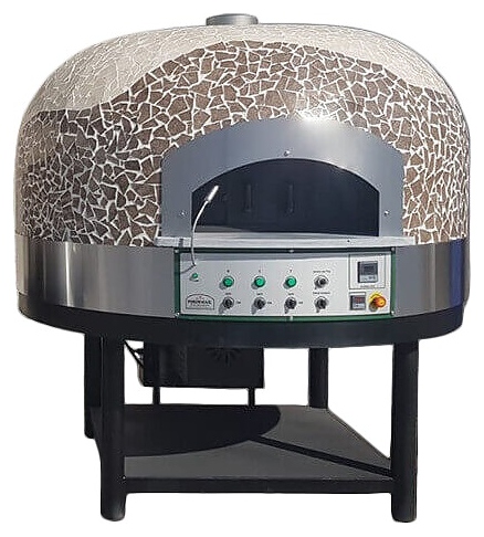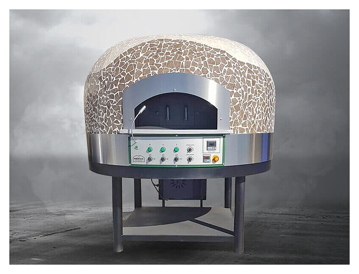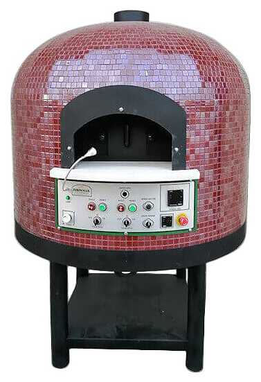 Электрическая ротационная печь Firinmak ElectroRot 165 используется в ресторанах, барах, кафе, на других предприятиях общественного питания и торговли для выпекания пиццы, хлеба и пирогов, приготовления шашлыка и гриль-блюд, обжарки, тушения и запекания по рецептуре, основанной на томлении и длительной выдержке при медленно падающей температуре. Модель оснащена камерой с моторизованным подом и куполом круглого сечения, заглубленным устьем в форме арки с фиксированными боковыми и съемной центральной заслонками, отверстием дымохода сверху, расположенной под устьем электромеханической панелью управления с поворотными переключателями, функциональными клавишами, светодиодными индикаторами и цифровыми дисплеями. Купол выполнен из огнеупорных бетонных блоков, стенд – из металла с антикоррозийным покрытием, внешняя облицовка купола – из листовой стали с антикоррозийным покрытием порошковой краской, теплоизоляция свода купола – из минеральной ваты, теплоизоляция основания – из газобетона. Декоративная отделка не входит в комплект поставки и приобретается отдельно. Особенности: