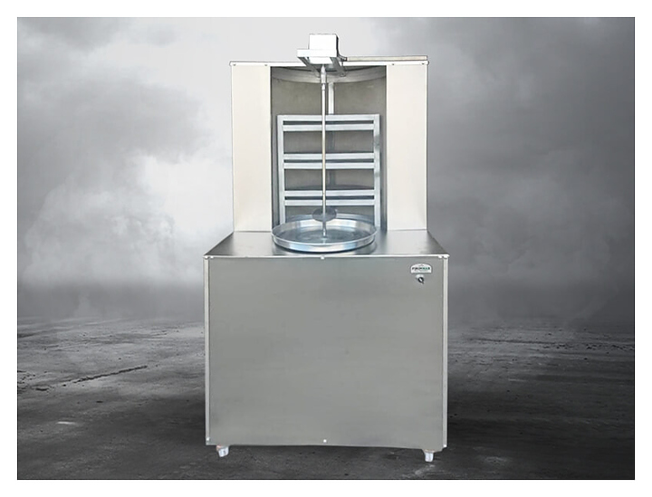 Комбинированный ротационный гриль для шаурмы Firinmak используется на предприятиях общественного питания и торговли для приготовления мясной начинки для шаурмы. Равномерное приготовление мяса происходит благодаря вращению заготовки вокруг своей оси около нагревательных элементов, по мере готовности прожаренный слой срезается электрическим или механическим ножом. Модель оснащена вертикально ориентированным жарочным блоком с несколькими зонами нагрева и электромеханическим управлением. Корпус выполнен из нержавеющей стали, жарочный блок – из огнеупорного кирпича. Особенности: