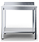 Стол Rada СТППЧ-9/7-С предназначен для обработки продуктов питания, раскатки теста и хранения кухонной техники на предприятиях общественного питания и пищевой промышленности. Модель оснащена регулируемыми по высоте ножками, съемным бортом и сплошной полкой. Каркас выполнен из профильной трубы квадратного сечения нержавеющей стали AISI 430, столешница и полка из нержавеющей стали AISI 430 толщиной 0,8 мм, столешница усилена подложкой из фанеры толщиной 16 мм. Особенности: