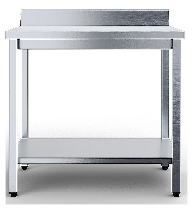 Стол Rada СТППЧ-8/6-С предназначен для обработки продуктов питания, раскатки теста и хранения кухонной техники на предприятиях общественного питания и пищевой промышленности. Модель оснащена регулируемыми по высоте ножками, съемным бортом и сплошной полкой. Каркас выполнен из профильной трубы квадратного сечения нержавеющей стали AISI 430, столешница и полка из нержавеющей стали AISI 430 толщиной 0,8 мм, столешница усилена подложкой из фанеры толщиной 16 мм. Особенности: