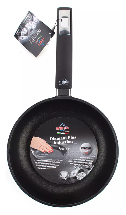 Сковорода Olympia Diamant Plus 411.24 предназначена для приготовления широкого спектра блюд на любых типах варочных поверхностей, включая индукционные, на предприятиях общественного питания и торговли, а также в домашних условиях. Модель оснащена расширенным кверху бортом и рукояткой с отверстием для подвешивания. Изделие выполнено из литого алюминия с антипригарным покрытием. Ручка фиксированная, материал бакелит. Особенности: