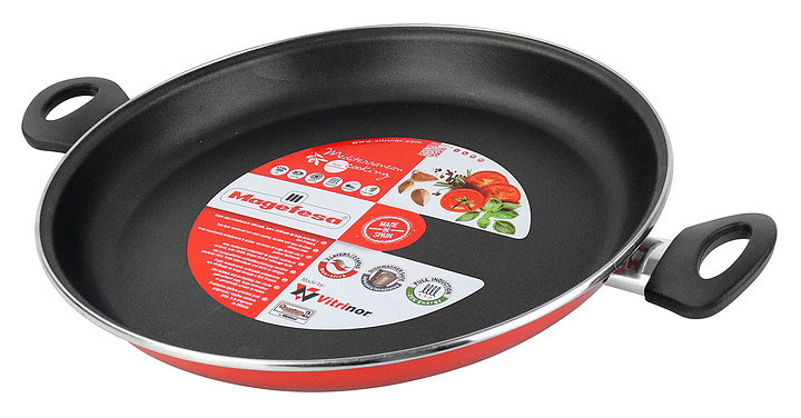 Сковорода Vitrinor Vitrinor Sfumatto 30 используется на предприятиях общественного питания и торговли, а также в домашних условиях для приготовления паэльи на любых типах варочных поверхностей, включая индукционные. Модель оснащена 2 эргономичными ручками. Изделие выполнено из стали с 2-слойным антипригарным покрытием, не содержащим PFOA, внешнее покрытие - из 2-слойной стеклоэмали, ручки - из бакелита. Особенности: