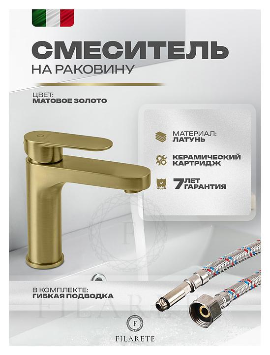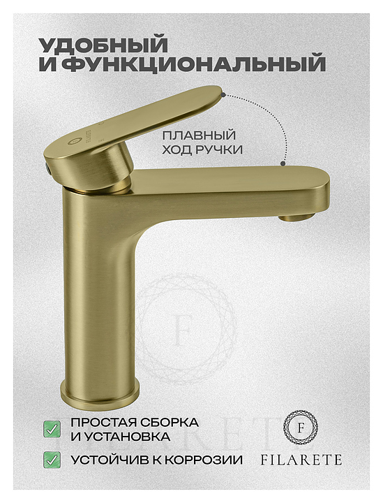 Смеситель для раковины FILARETE Retta FL5030MG, матовое золото