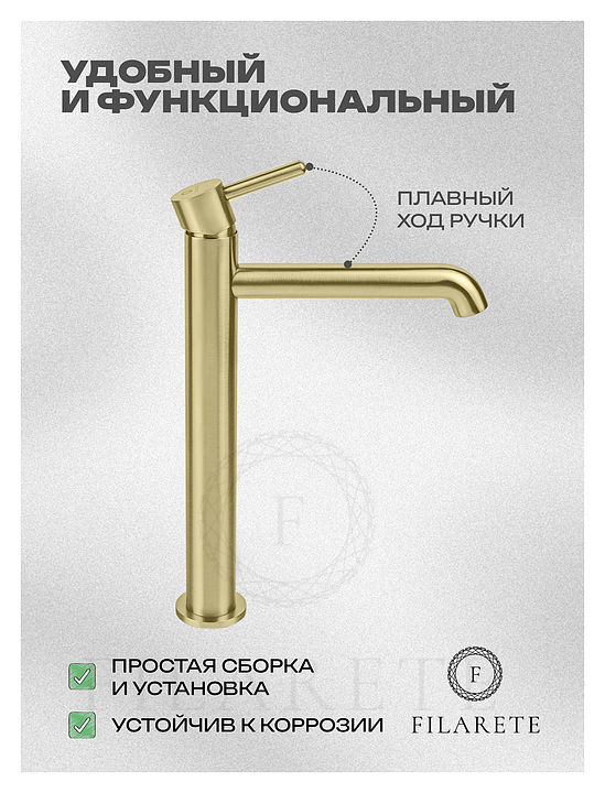 Смеситель для раковины FILARETE Roun FL6020MG, матовое золото