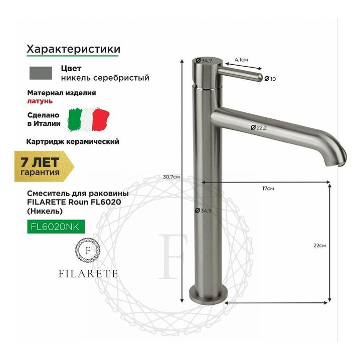 Смеситель для раковины FILARETE Roun FL6020NK, никель
