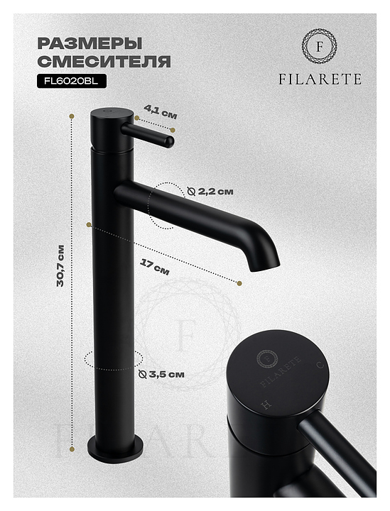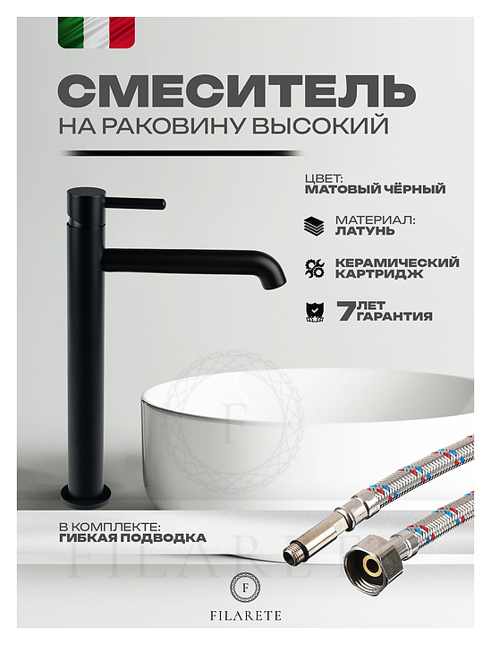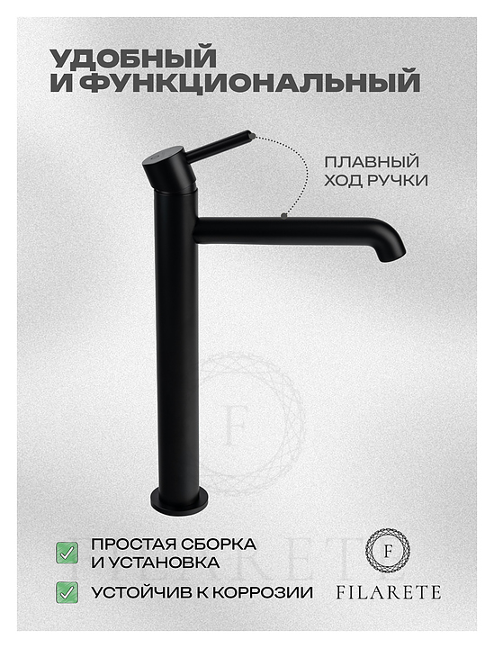 Смеситель для раковины высокий FILARETE Roun FL6020BL предназначен для использования в ванных помещениях для подачи горячей и холодной воды. Серия выполнена в современном стиле. Модель оснащена керамическим картриджем, обеспечивающим плавный ход рычага смесителя, контроль и точность при выборе напора и температуры воды, а также аэратором для создания мягкой ровной струи без разбрызгивания. Изделие выполнено из высококачественной латуни, отличающейся прочностью, долговечностью и устойчивостью к перепадам температур. Комплект поставки: