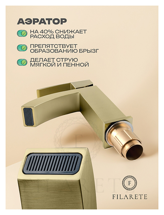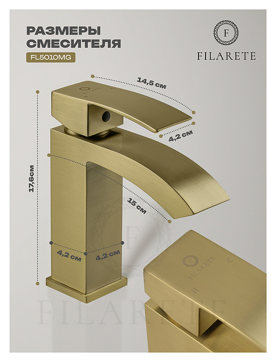 Смеситель для раковины FILARETE Waterfall FL5010MG, матовое золото