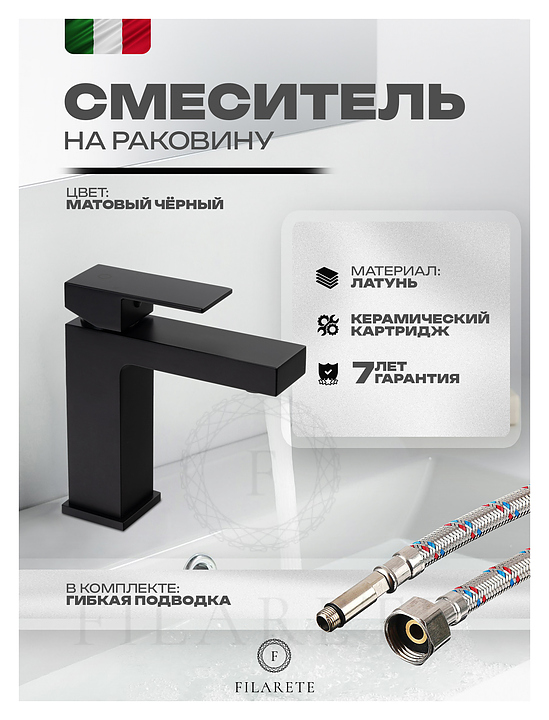 Смеситель для раковины FILARETE Fing FL5040BL, черный матовый