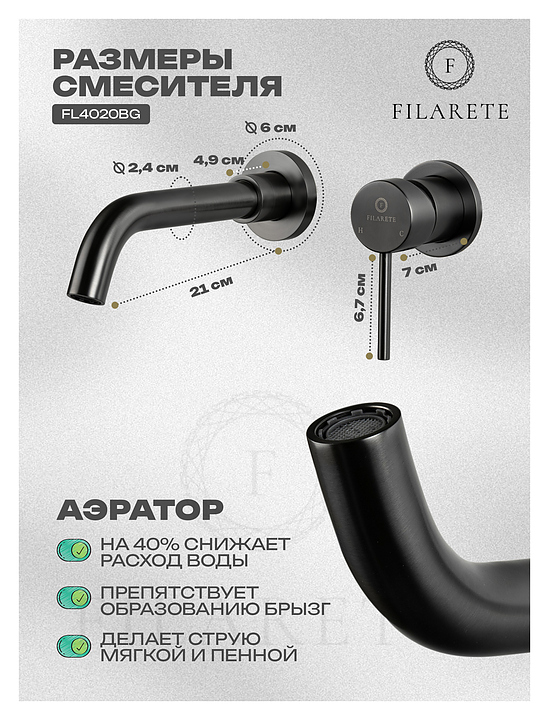 Смеситель для раковины встраиваемый FILARETE Roun FL4020BG предназначен для использования в ванных помещениях для подачи горячей и холодной воды. Серия выполнена в современном стиле. Модель оснащена керамическим картриджем, обеспечивающим плавный ход рычага смесителя, контроль и точность при выборе напора и температуры воды, а также аэратором для создания мягкой ровной струи без разбрызгивания. Изделие выполнено из высококачественной латуни, отличающейся прочностью, долговечностью и устойчивостью к перепадам температур. Комплект поставки: