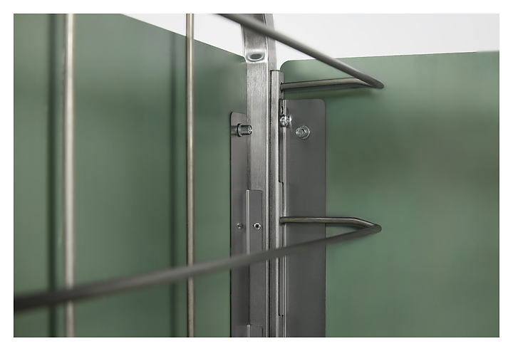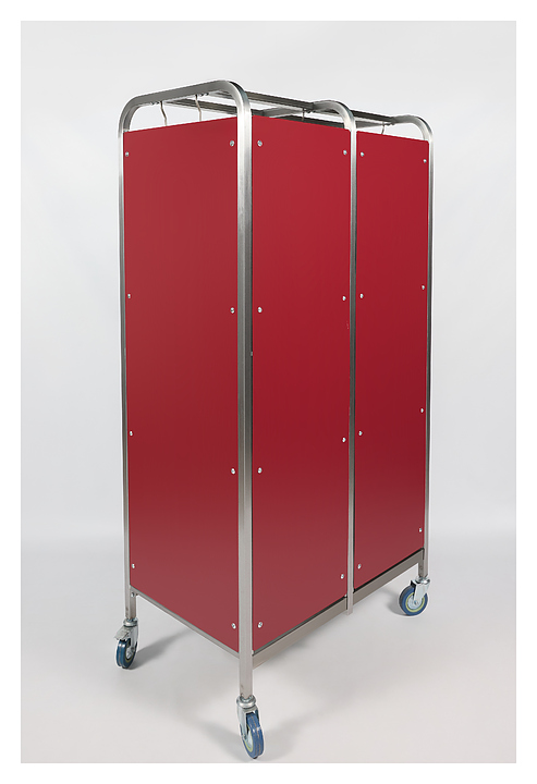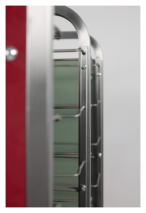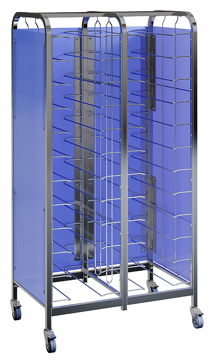 Тележка-шпилька Restoinox ТШРЗППР-12х2/360/540 предназначена для хранения и транспортировки подносов на предприятиях общественного питания и торговли. Модель оснащена 4 колесами, 2 из которых со стопорами. Разборный каркас выполнен из трубы 25х25 мм нержавеющей стали AISI 430, боковины - из цветного пластика. Дополнительные характеристики: