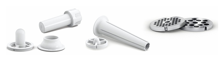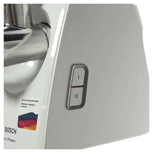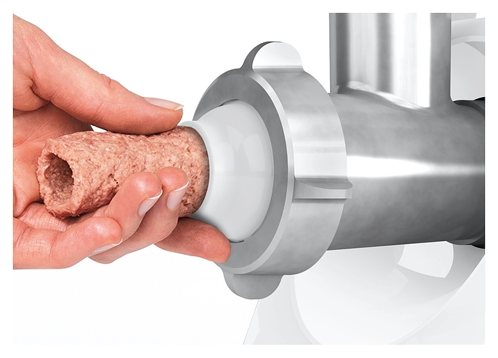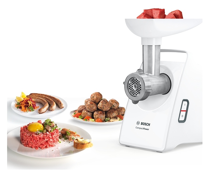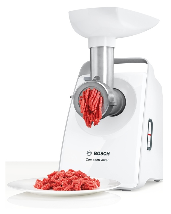 Мясорубка Bosch MFW3520W серии CompactPower измельчает мясо и рыбу при производстве фарша и колбасок. Модель оснащена 2 насадками, ручкой для переноски и отсеком для хранения дисков. Нож с двустронней заточкой гарантирует идеальное рубление мяса, формовочные диски для фарша позволяют получить продукт нужной консистенции. Универсальный толкатель обеспечивает равномерное прохождение продуктов через мясорубку. Прорезиненные ножки гарантируют безопасность при эксплуатации. Корпус и лоток выполнены из высококачественного пластика, который отличается долговечностью и надежностью при длительном использовании. Комплектация: