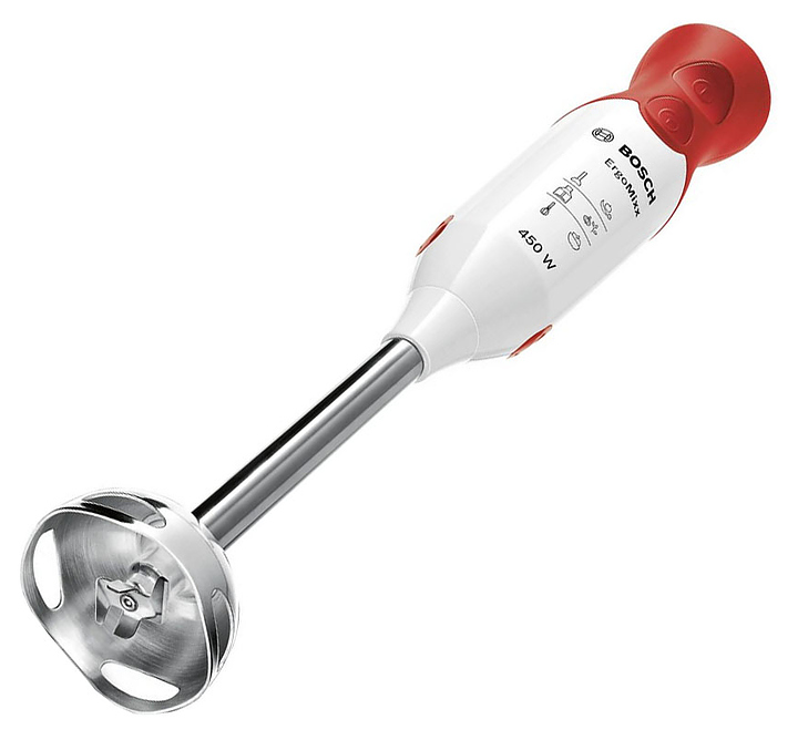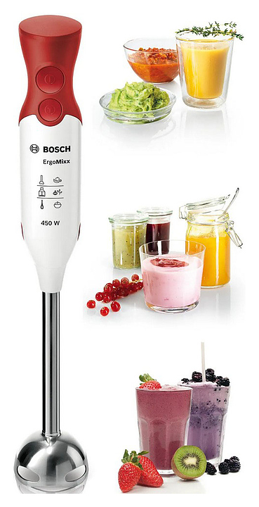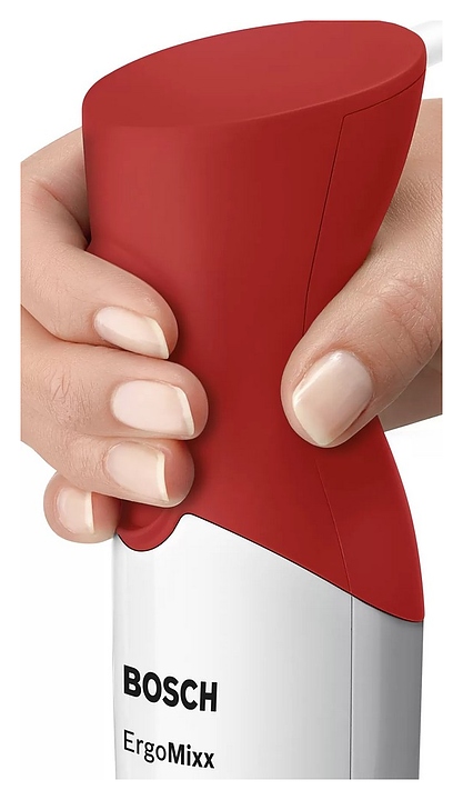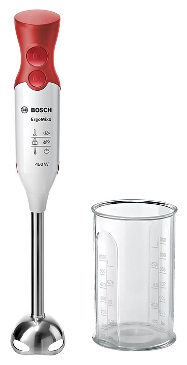 Погружной блендер Bosch MSM64110 серии ErgoMixx предназначен для взбивания жидкого теста, кремов и коктейлей, измельчения фруктов, овощей, орехов и трав, а также приготовления соусов и супов-пюре в домашних условиях. Модель оснащена ножом с 4 лезвиями QuattroBlade, эргономичной ручкой с мягким покрытием Soft-touch и кнопками. Турбо-режим обеспечивает максимальную мощность за короткое время для быстрого измельчения твердых продуктов и приготовления однородных смесей, коктейлей и пюре. Съемные детали можно мыть в посудомоечной машине. Корпус выполнен из пластика, погружная часть - из нержавеющей стали. В комплект поставки входит мерный стакан. Дополнительные характеристики: