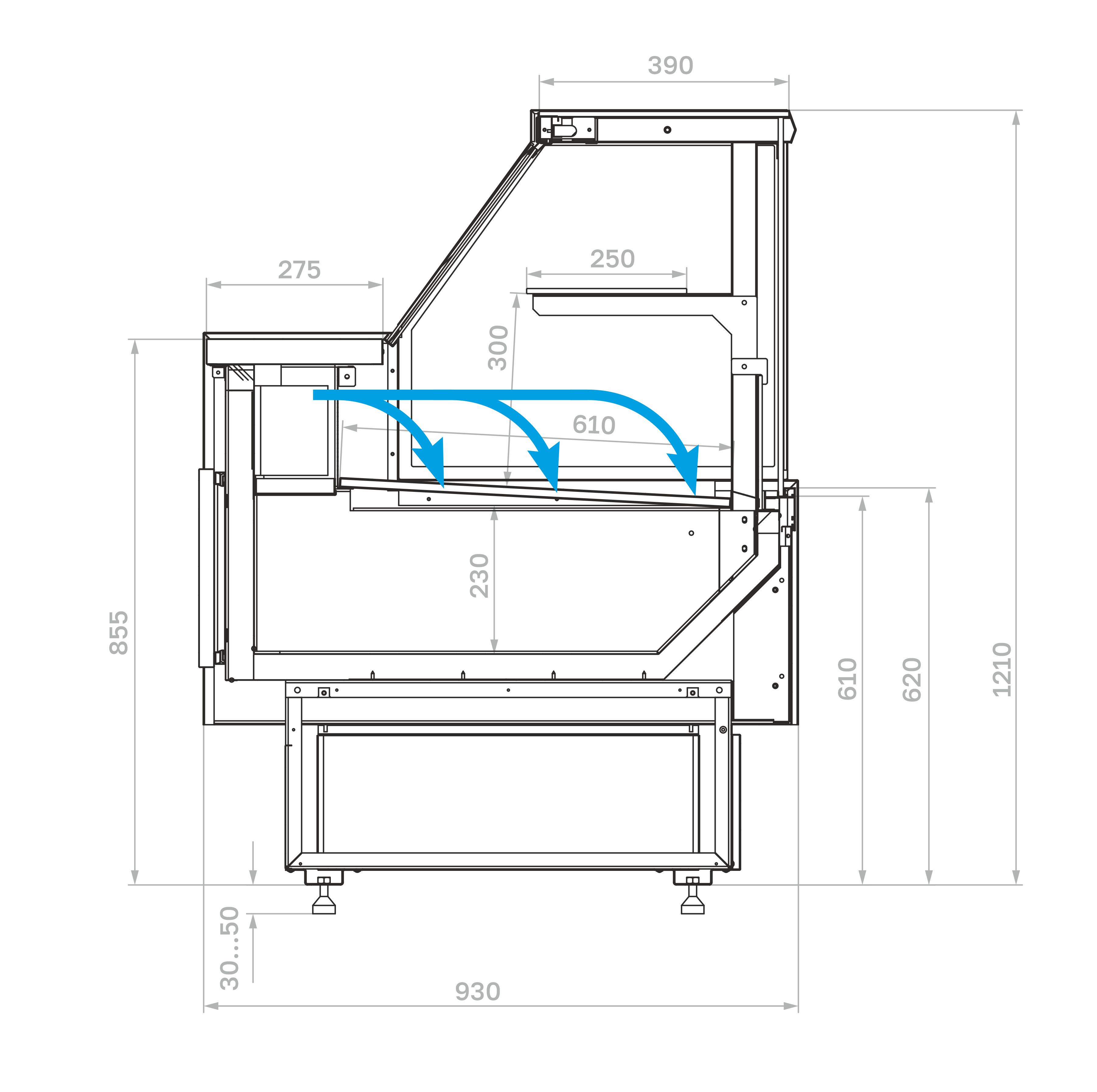 Холодильная витрина Carboma Palm 3 GC95 SV 1,5-1 версия 2.0 используется на предприятиях общественного питания и торговли для охлаждения, кратковременного хранения, демонстрации и продажи продуктов питания, салатов, молочных и других гастрономических изделий. Модель оснащена системой защиты фронтального стекла от запотевания теплым воздухом, экономичным и производительным компрессором и демонстрационной поверхностью черного цвета, служащей эффектным фоном для выложенных товаров. Экспозиционная поверхность выполнена из крашеной стали, столешница - из шлифованной нержавеющей стали. Особенности: