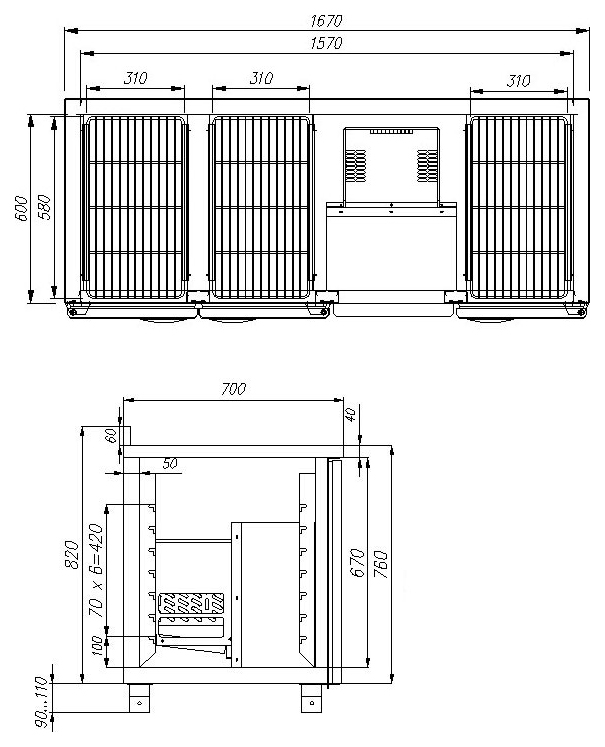 Стол холодильный Carboma T70 M3-1 0430-1 (3GN/NT 111) без борта
