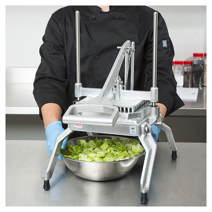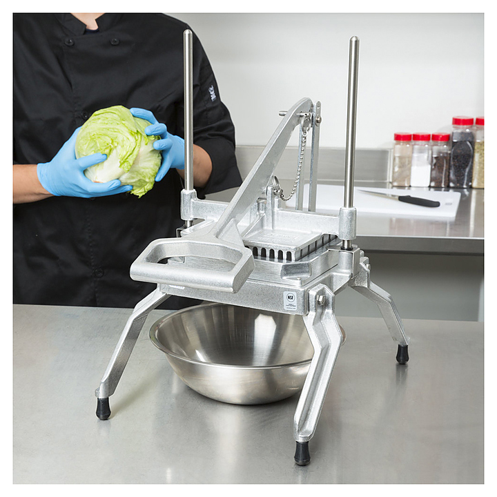 Овощерезка Nemco N55650-CS используется на предприятиях общественного питания и торговли для нарезки кочанного салата-латука полосками и приготовленного мяса птицы для сэндвичей, тортилий и салатов. Модель оснащена 4 нескользящими ножками. Корпус и ножки выполнены из алюминия, ножи - из нержавеющей стали. Особенности: