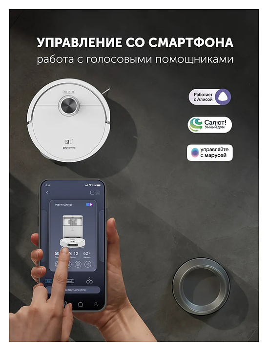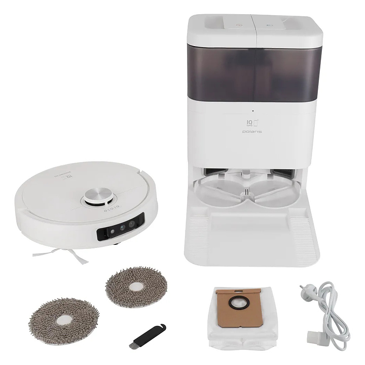 Робот пылесос со станцией самоочистки Polaris PVCRAC 7290 WIFI IQ Home созданный для сухой, влажной и комбинированной уборки, обеспечивает идеальную чистоту в вашем доме. Устройство оснащено системой построения до 5 карт помещения и возможностью управления через смартфон, а также голосовыми помощниками. В комплект входит пылесос, фильтр НЕРА 1 шт, микрофибра 2 шт, 1 боковая щетка, щеточка для очистки, мешок для пыли 1 шт, зарядная база, адаптер, инструкция. Особенности: