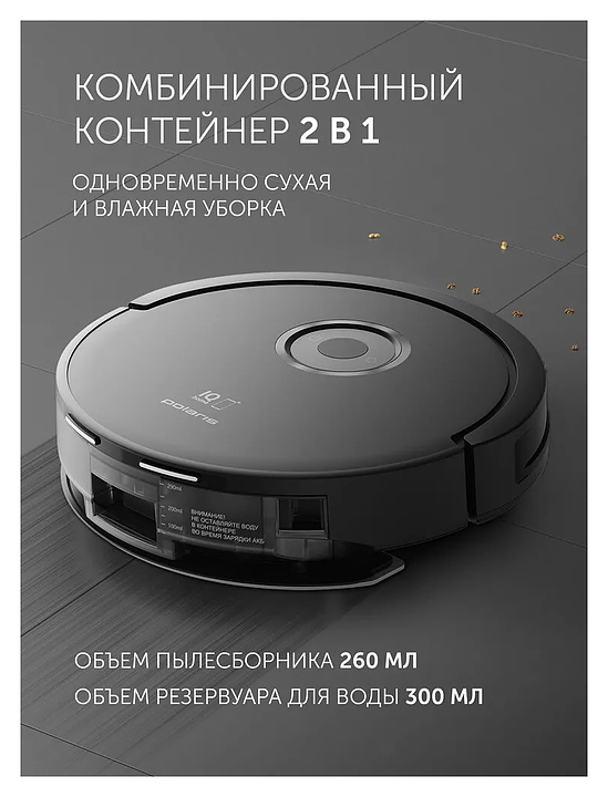 Робот пылесос Polaris PPVCR G2 3200 IQ Home Aqua созданный для сухой, влажной и комбинированной уборки, обеспечивает идеальную чистоту в вашем доме. Устройство оснащено станцией самоочистки, возможностью управления через смартфон, а также голосовыми помощниками. В комплект входит пылесос, зарядное устройство, адаптер, фильтр НЕРА 2 шт, микрофибра 2 шт, 2 боковые щетки, щеточка для очистки, инструкция, комбинированный контейнер 2 в 1. Особенности: