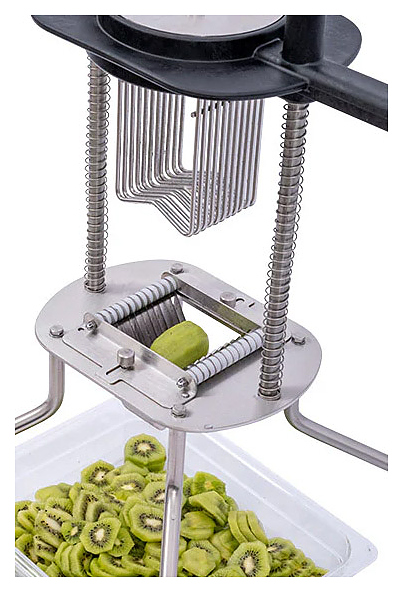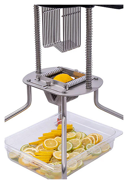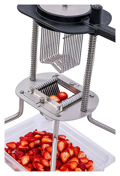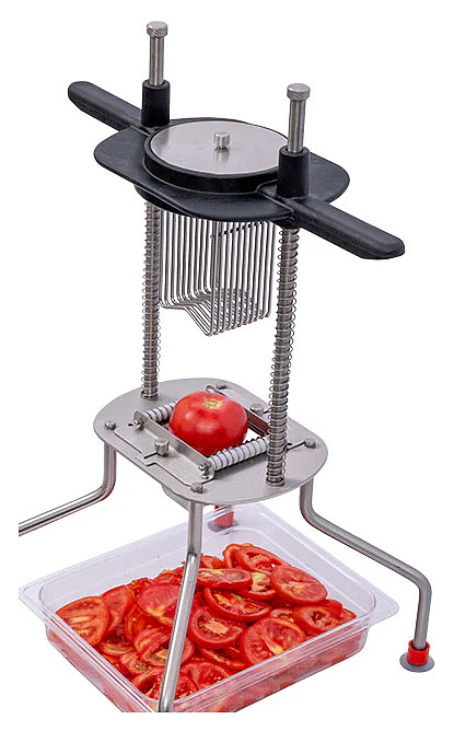Вертикальное устройство CanCan 1318-1 используется на предприятиях общественного питания и торговли для нарезки томатов на ломтики. Модель оснащена эргономичным толкающим механизмом и стабильным размером разреза для контроля порций. Устройство выполнено из нержавеющей стали. Дополнительные характеристики: