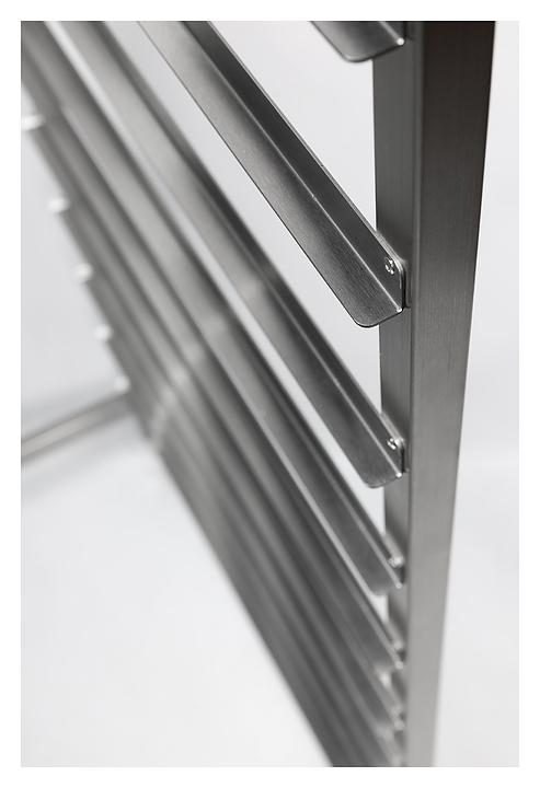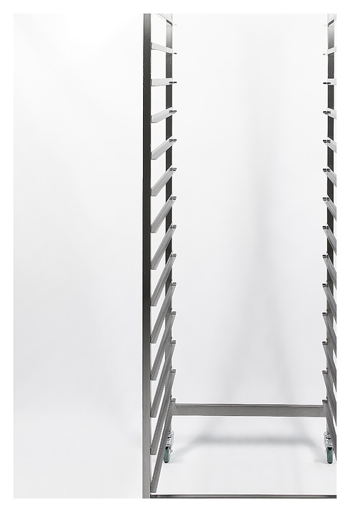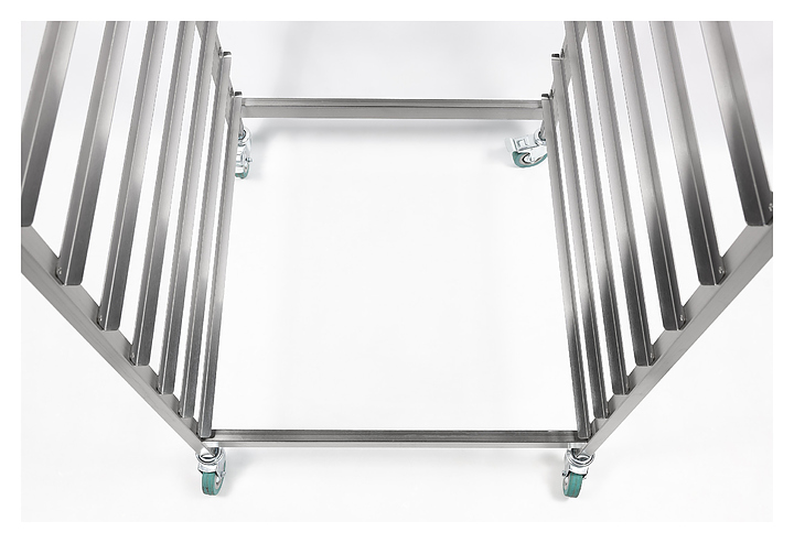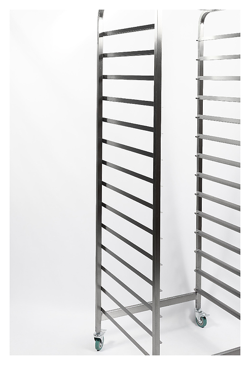 Тележка-шпилька Restoinox ТШСП-14 660х600 предназначена для хранения и транспортировки противней на предприятиях общественного питания и торговли. Модель оснащена рядом с 14 уровнями направляющих. Каркас выполнен из профиля квадратного сечения из нержавеющей стали марки AISI 430, направляющие – из углового профиля из нержавеющей стали марки AISI 430, упаковка – стрейч-пленка. Особенности: