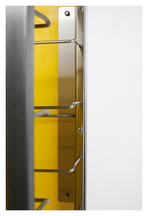 Тележка-шпилька Restoinox ТШРЗППР-12/360/540 предназначена для хранения и транспортировки подносов на предприятиях общественного питания и торговли. Модель оснащена рядом с 12 уровнями направляющих. Каркас выполнен из профиля квадратного сечения из нержавеющей стали марки AISI 430, направляющие – из прутка из нержавеющей стали марки AISI 304, панели – из пластика. Особенности: