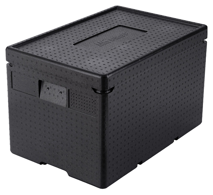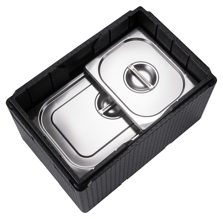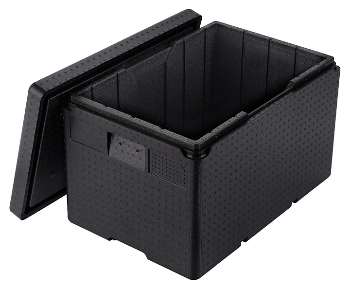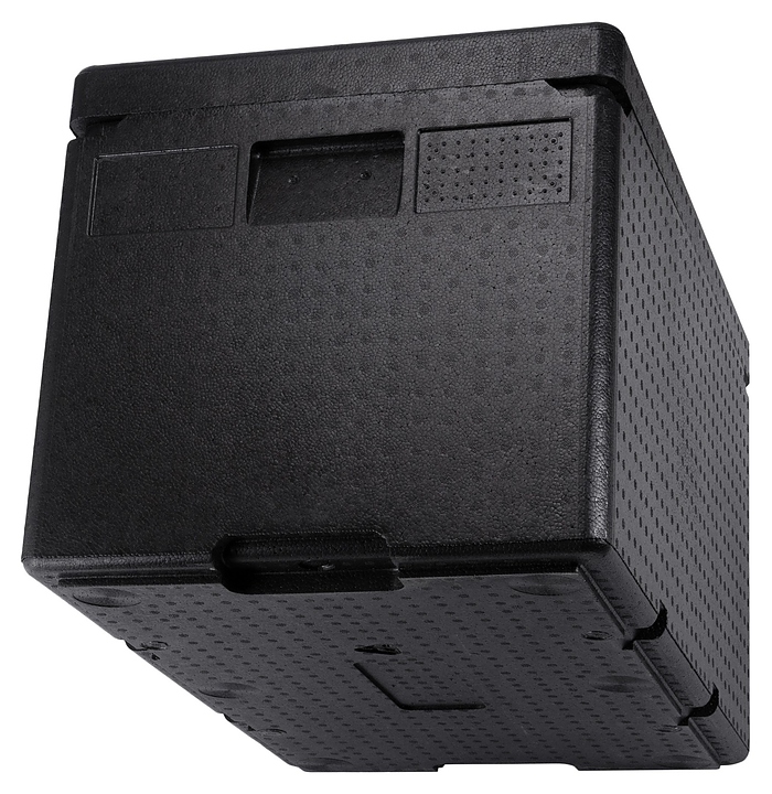 Термоконтейнер MGprof 77608 используется службами доставки предприятий общественного питания и пищевой промышленности, а также в быту, во время туристических походов, пикника, рыбалки или дорожных путешествий для хранения и транспортировки приготовленных блюд, напитков, льда, свежих фруктов и других пищевых продуктов в автономных изотермических условиях. Модель прямоугольно ориентированной формы оснащена съемной плотно прилегающей крышкой. Изделие выполнено из высококачественного вспененного полипропилена (EPP) черного цвета. Особенности: