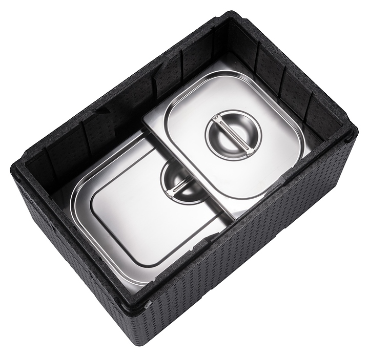 Термоконтейнер MGprof 77607 используется службами доставки предприятий общественного питания и пищевой промышленности, а также в быту, во время туристических походов, пикника, рыбалки или дорожных путешествий для хранения и транспортировки приготовленных блюд, напитков, льда, свежих фруктов и других пищевых продуктов в автономных изотермических условиях. Модель прямоугольно ориентированной формы оснащена съемной плотно прилегающей крышкой. Изделие выполнено из высококачественного вспененного полипропилена (EPP) черного цвета. Особенности: