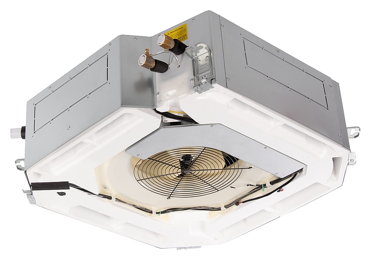 Кассетный фанкойл SHUFT SFR-600R V2 предназначен для кондиционирования административных, производственных и коммерческих помещений. Прибор оснащен электронным блоком управления и панелью индикации, лицевая панель – воздухозаборной решеткой и воздуховыпускными отверстиями с подвижными жалюзи, пульт – кнопочной клавиатурой и информативным жидкокристаллическим дисплеем. Корпус прибора выполнен из гальванически оцинкованной стали, лицевая панель – из ударопрочного пластика с поверхностью белого цвета, корпус пульта – из белого пластика, дренажный поддон – из полистирола в сочетании с техническим пластиком, трубки теплообменника – из меди, оребрение теплообменника – из алюминиевых ламелей с гидрофильной поверхностью, воздушный фильтр – из нейлонового волокна с жесткой рамой, шумоизоляция вентилятора – из губчатого материала.