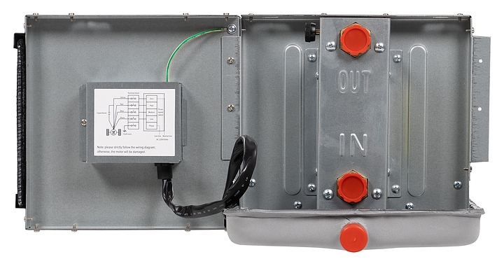 Средненапорный канальный фанкойл SHUFT SFF-1400G50 предназначен для кондиционирования жилых, административных, производственных и коммерческих помещений. Модель оснащена 4 центробежными вентиляторами, 2 электродвигателями, биметаллическим теплообменником трубчато-ребристого типа, электронным блоком управления, воздухозаборным отверстием и воздуховыпускным отверстием с горизонтальными жалюзи. Корпус прибора выполнен из гальванически оцинкованной стали, дренажный поддон – из оцинкованной стали, трубки теплообменника – из меди, оребрение теплообменника – из алюминия, воздушный фильтр – из нейлонового волокна с жесткой рамой, шумоизоляция вентилятора – из губчатого материала.