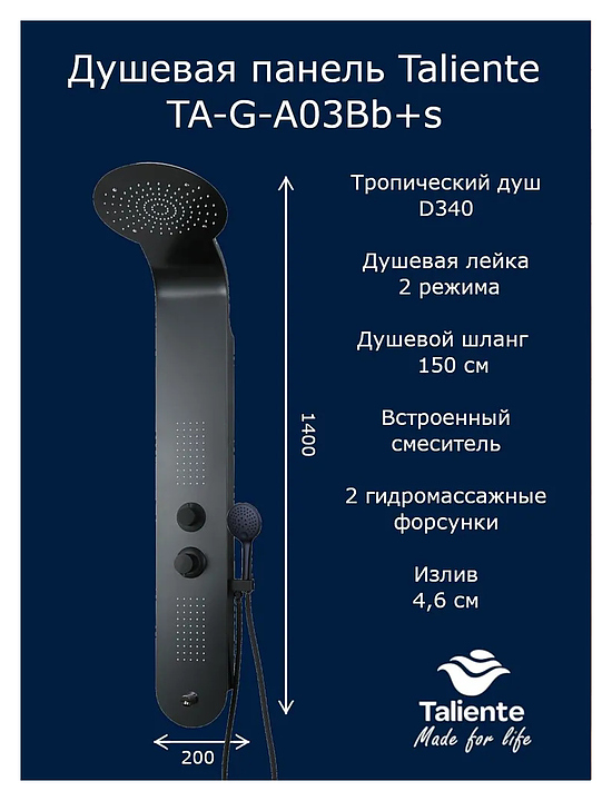 Панель душевая гидромассажная Taliente Amato TA-G-A03Bb+s с изливом, черный
