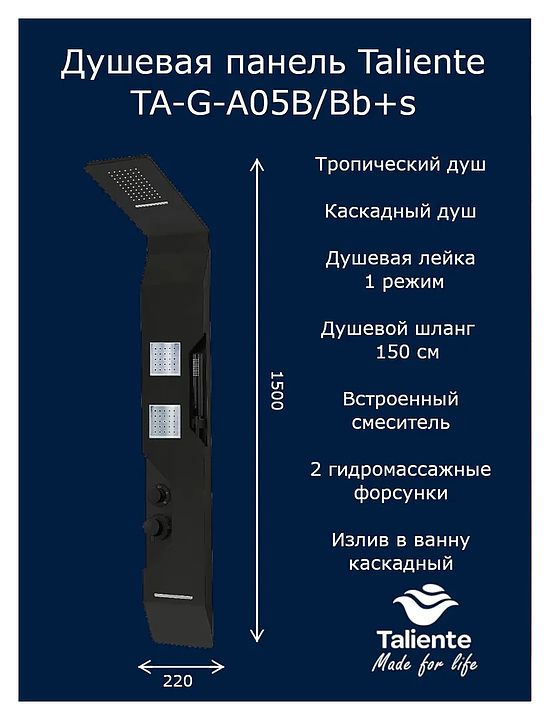 Панель душевая гидромассажная Taliente Amato TA-G-A05B/Bb+s с изливом, черный