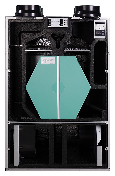 - Высокоэффективный пластинчатый (мембранный) рекуператор: нагрев приточного воздуха энергией вытяжного и возврат фильтрованной влаги в помещение