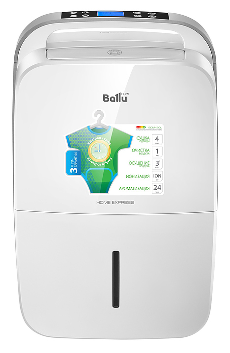 Осушитель воздуха Ballu BD30MN используется в офисах, гостиничных номерах и домашних условиях для устранения излишней влаги, сушки одежды, восстановления оптимального уровня влажности, ионизации и очищения воздуха от вредных примесей и неприятных запахов. Модель оснащена 2 режимами сушки, цифровым дисплеем с подсветкой, электронным управлением, ручкой и шасси для перемещения. Функция равномерного распределение потока воздуха Аuto Swing аккуратно высушит даже деликатные ткани, сохранит их структуру и не оставит складок на ткани. Аромакапсула придаст белью аромат или наполнит комнату приятным и тонизирующим запахом, поможет устранить неприятный запах сырости в помещениях с повышенным уровнем влажности. Корпус выполнен из пластика. В комплект поставки входит моющийся воздушный фильтр. Особенности: