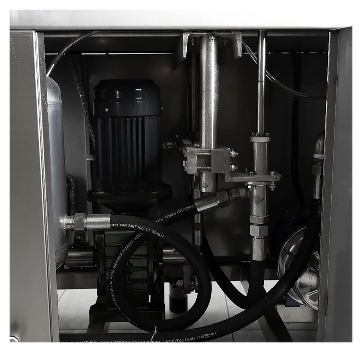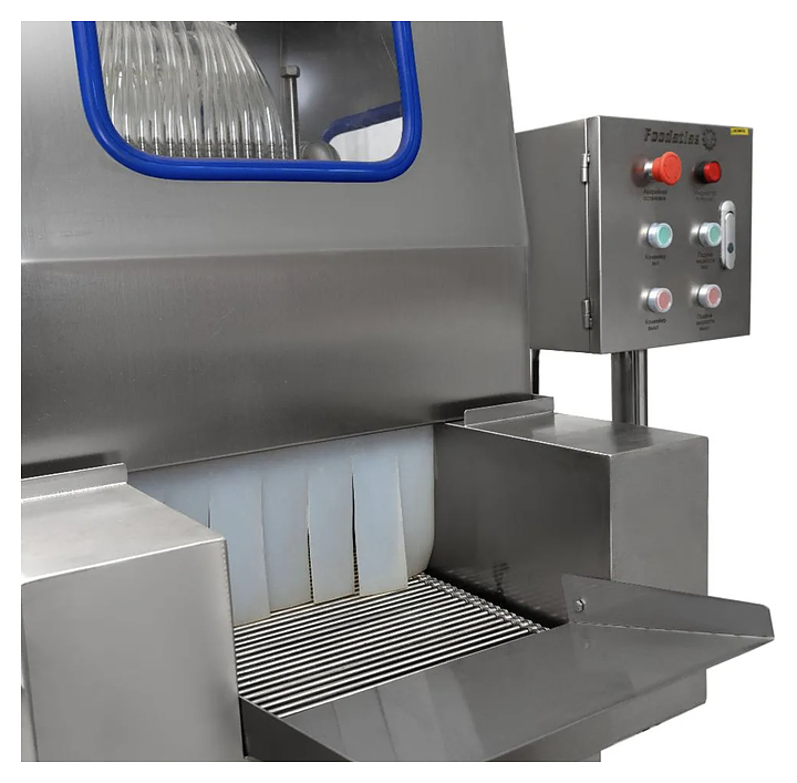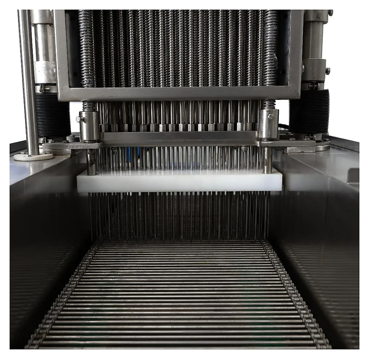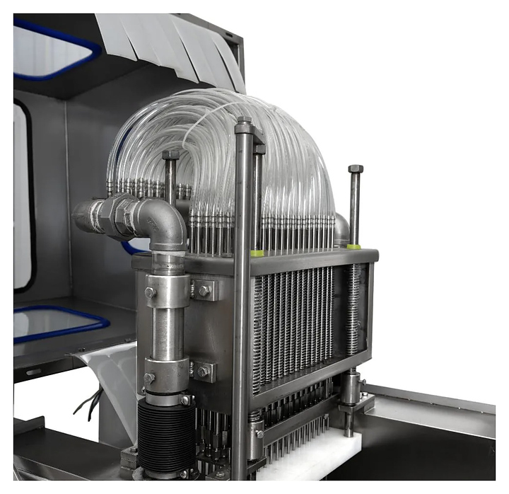 Инъектор Foodatlas ZSJ-80 используется на предприятиях мясоперерабатывающей промышленности, общественного питания и торговли для предварительного посола предназначенного для маринования или консервирования сырья такого как мясо, птица, рыба и различные деликатесы. Принцип работы:насос подает отфильтрованный рассол или маринад из встроенного бака через регулировочный и запорный клапан в короб с иглами, иглы втыкают в мясо, происходит шприцевание, и состав равномерно распределяется внутри продукта, запорный клапан контролирует подачу раствора, а остатки рассола фильтруются и возвращаются обратно в бак. Корпус и иглы выполнены из нержавеющей стали, упаковка – фанерный ящик. Особенности: