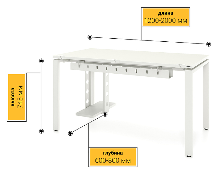 Стол офисный прямой ZAMM Формат 60х30 ТР с пропусками, кабель-каналом и подвесом системного блока 1800х800, белый