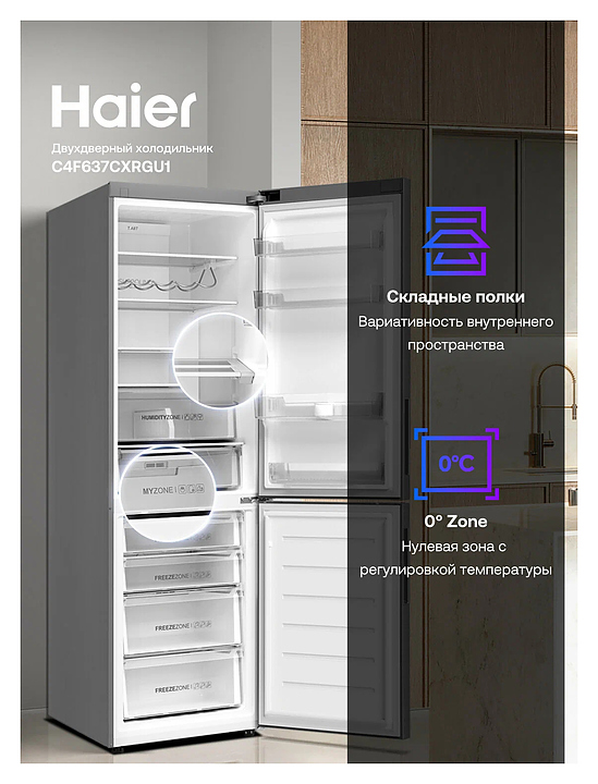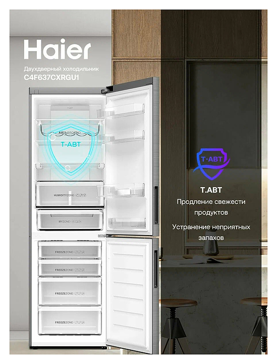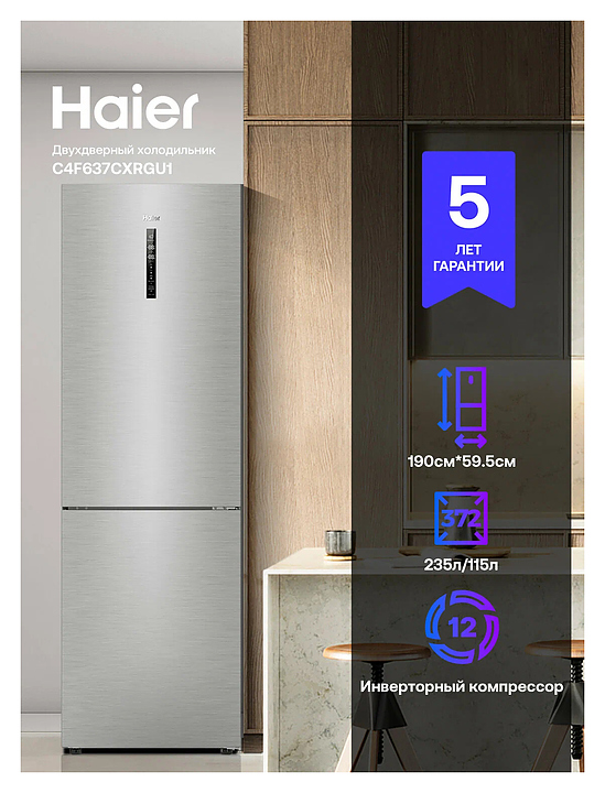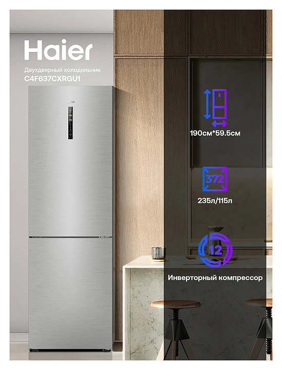 Холодильник Haier C4F637CXRGU1 372 л 595х682х1900 мм, серебристый, серый