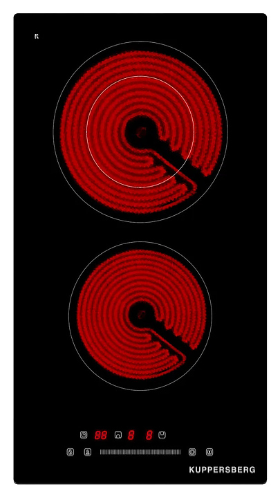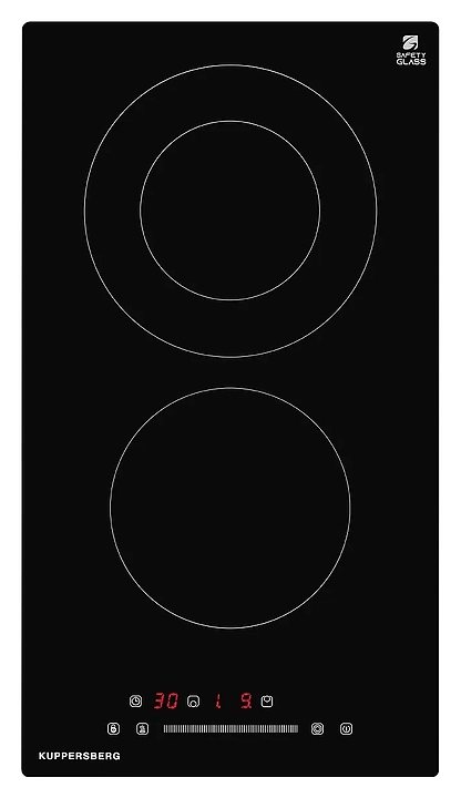 Электрическая варочная панель Kuppersberg ECS 321 предназначена для приготовления большого ассортимента блюд в домашних условиях. Модель оснащена 2 независимыми варочными зонами различной мощности, кабелем питания без вилки, расположенной в центре фронта электронной панелью управления с сенсорными функциональными клавишами и 3 цифровыми светодиодными дисплеями с красной подсветкой индикации. Рабочая поверхность выполнена из высококачественной стеклокерамики KANGER черного цвета с прямой кромкой.