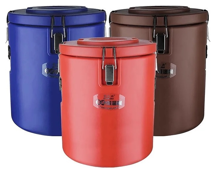 Профессиональный термос Restopit тр052 предназначен для хранения и транспортировки в условиях длительного поддержания первоначальной температуры горячих или холодных блюд. Емкость цилиндрической формы оснащена 3 накидными защелками для герметичной фиксации крышки, складными боковыми рукоятками и съемной крышкой с ручкой. Емкость и крышка выполнены из нержавеющей стали, внешние корпусы – из пластика красного цвета. Дополнительные характеристики: